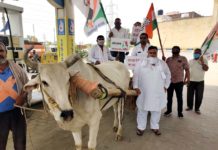 बैलगाडिय़ों पर सवार होकर कांग्रेसियों ने लघु सचिवालय पर किया...